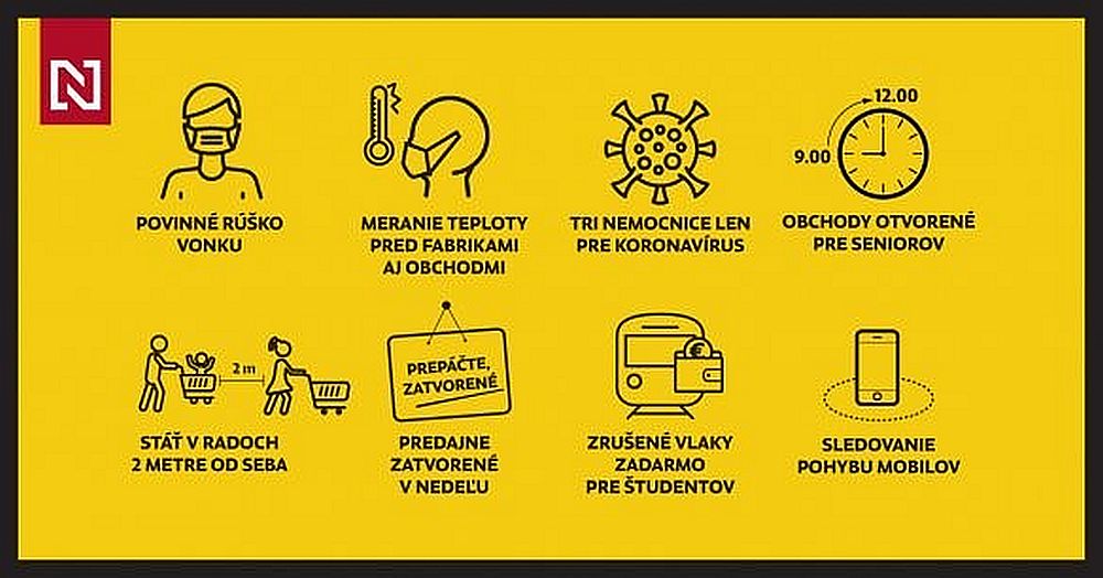 14 apríla, 2020in Aktuality, Domáceby admin69 Prijaté opatrenia proti šíreniu koronavírusu Prijaté opatrenia proti šíreniu koronavírusu si môžete pozrieť na tejto názornej grafike. (zdroj:www.dennikn.sk)