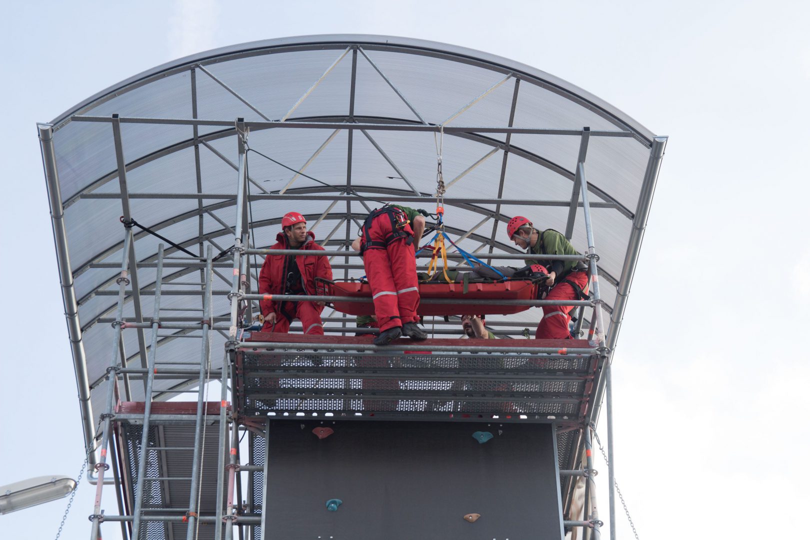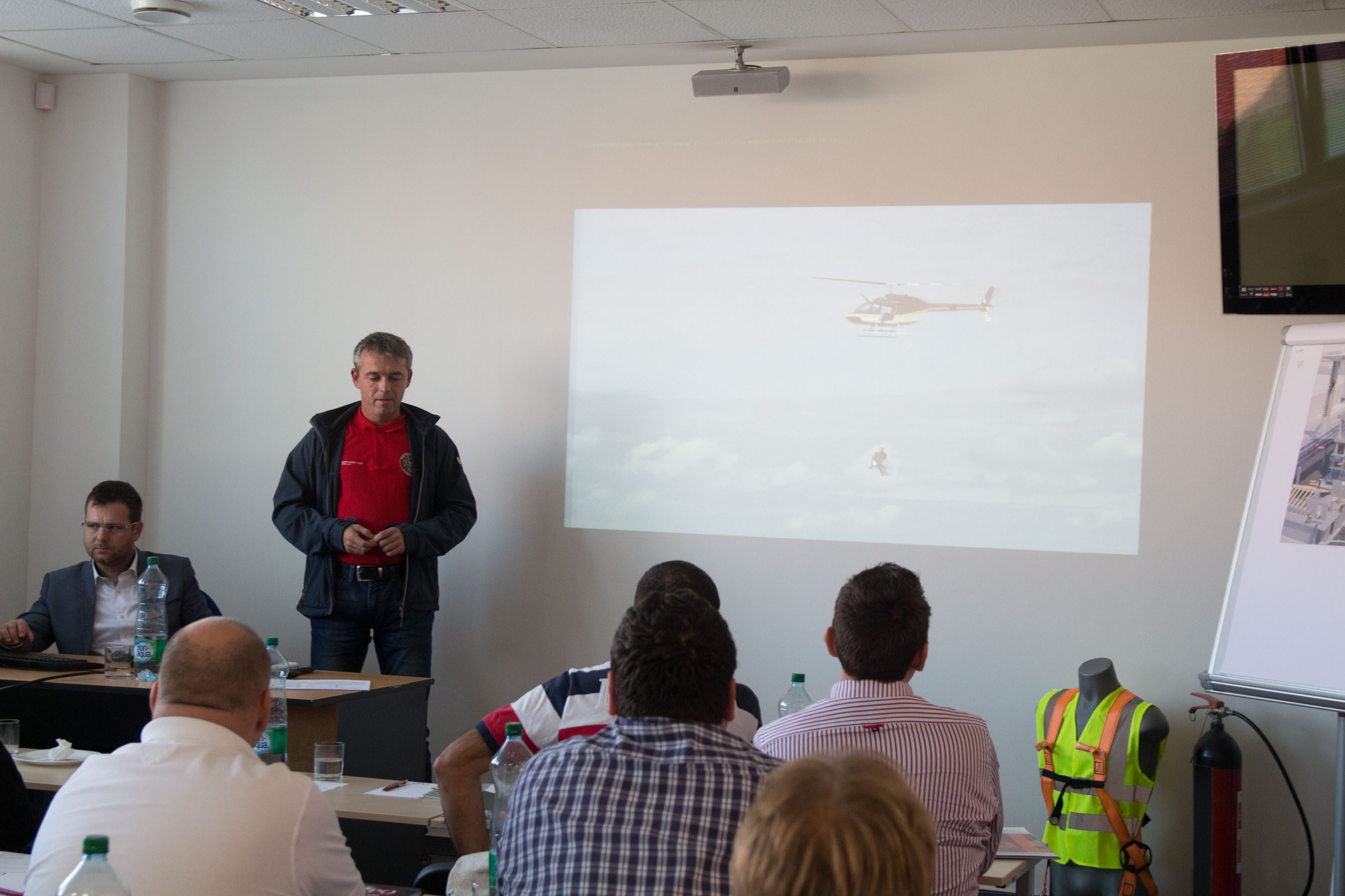 Chceli sme tak ponúknuť odbornej verejnosti jej výklad zástupcami MPSVaR SR, Inšpektormi práce a špecialistami pre bezpečnosť pri práci vo výške. Pohľad na evakuáciu osoby, ktorá bola zachytená pri páde z výšky alebo do hĺbky priblížia zástupcovia záchranných zložiek z Hasičského a záchranného zboru SR, Hlavnej banskej záchrannej stanice, o.z. a Horskej záchrannej služby.