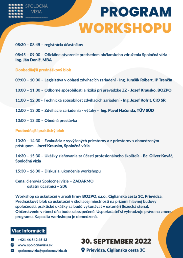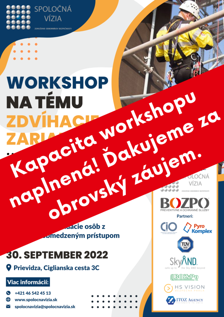 Spoločná vízia, o.z. a spoločnosť BOZPO, s.r.o. organizuje 30. septembra 2022 workshop na tému: Zdvíhacie zariadenia